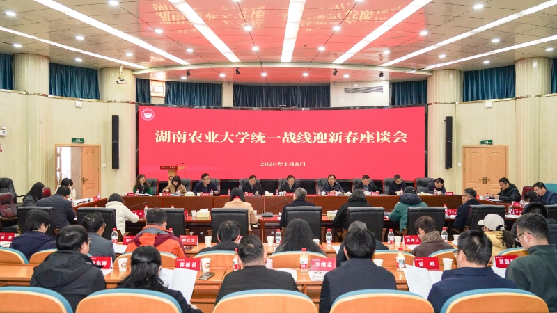 本网讯(统战部 邱艳阳)1月8日上午,学校在生命科学楼国际会议厅召开统一战线迎新春座谈会。校党委书记兰勇,党委副书记、校长、中国工程院院士邹学校,校党委委员、副校长吴波,副校长郑晓峰,以及各民主党派、统战团体负责人,政协委员、政府参事和相关职能部门负责人出席,吴波主持会议。